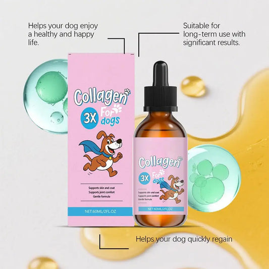 Premium Collagen for Dogs – Liquid Support for Skin, Coat, HIPS & Joints –Types I, II & III Collagen – Made in USA
